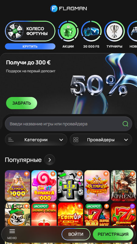 Сайт Flagman также предлагает раздел казино. Игрокам доступен широкий выбор игр от 90+ ведущих провайдеров (Pragmatic Play, Spribe, Mascot, Hacksaw Gaming и т. д.). На вкладке можно найти:
