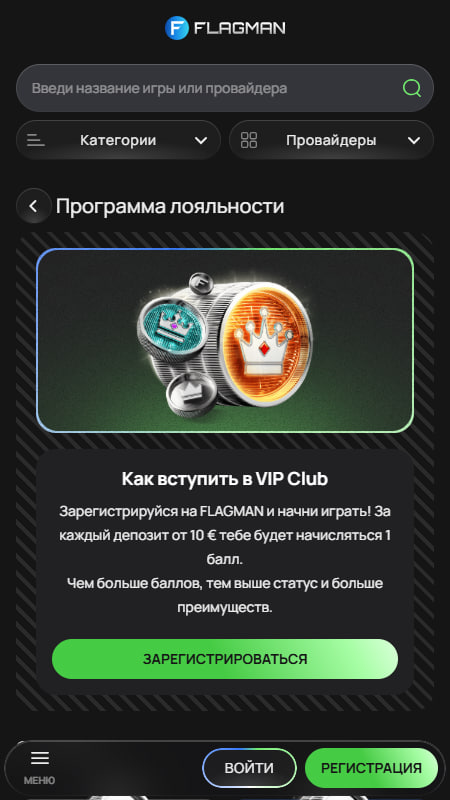 Самые активные бетторы Flagman получают доступ к множеству привилегий в рамках многоуровневой программы лояльности – VIP Club. Пользователи накапливают баллы за каждую сделанную ставку, что позволяет повышать свой статус. Всего их 4.