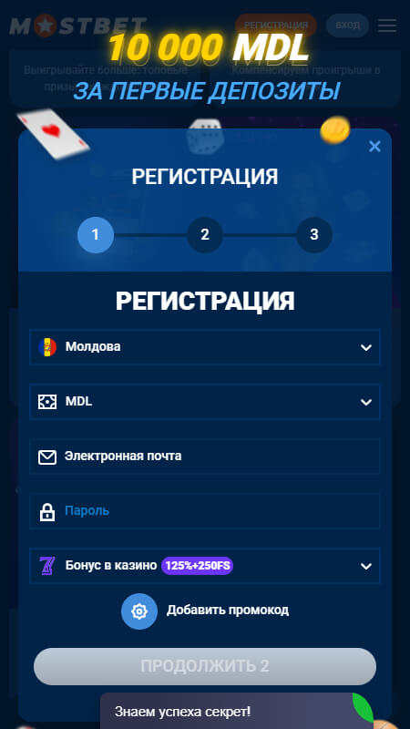 Регистрация в Mostbet Молдова максимально простая и занимает не более пары минут: