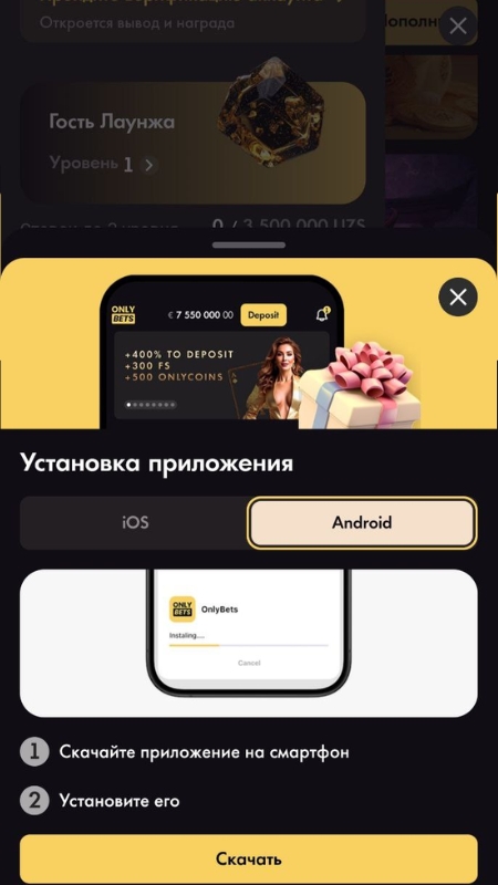 OnlyBets не скупится на welcome-пакет для казино. Первые внесенные депозиты приходят с солидным усилением в +400 %. С максимальной суммой в 25 000 000 UZS и 300 FS в придачу, игрок получает лучший стратегический резерв для захвата грандиозного джекпота.