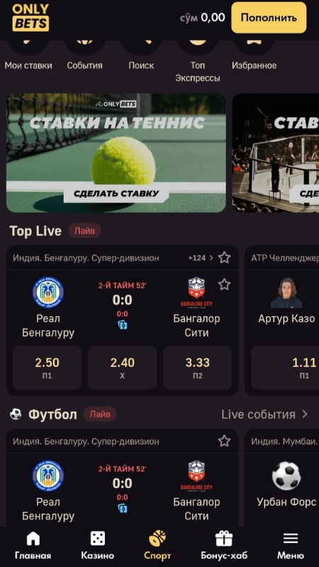 В OnlyBets найдутся десятки моментов для выигрыша благодаря категории live-ставок. В лайве можно запросто поменять исход и стратегию ставок. Топовым в этой категории для узбекских игроков становятся: